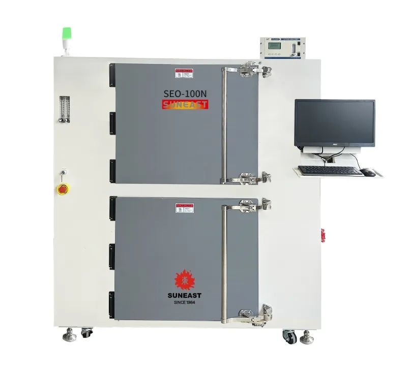 半導體充氮烤箱SEO-100N通用性強,具有高穩定性和高性能,采用高容量水平空氣再循環系統,采用專有的腔室結構和密封技術,具有出色的氣密性和溫度均勻性,滿足半導體產品高性能要求。此烤箱適用于固化半導體晶圓、IC封裝(銅基板,銀膠,硅膠,環氧樹脂)、玻璃基板等產品烘烤。