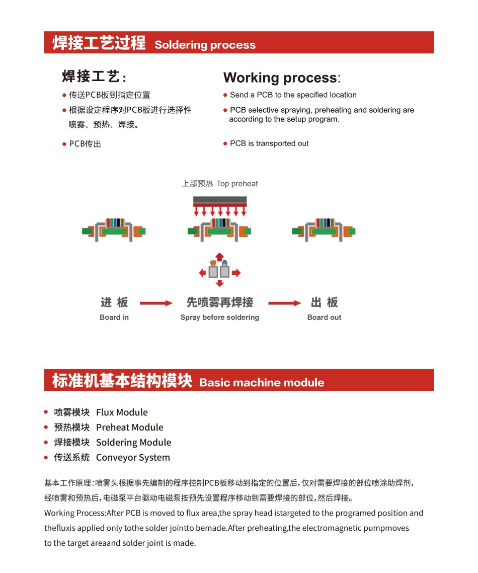 | 噴霧模塊 | 預熱模塊 | 焊接模塊 | 傳送系統(tǒng) |