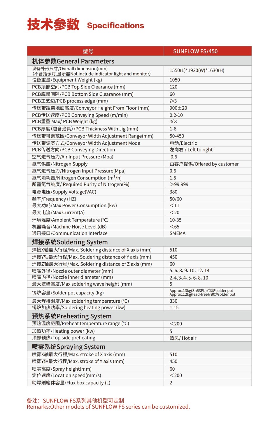 | 備注:SUNFLOWFS系列其他機型可定制 | |