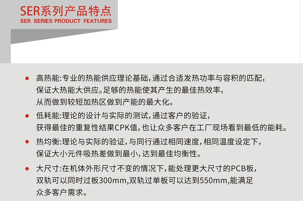 回流焊SER系列產(chǎn)品特點(diǎn):